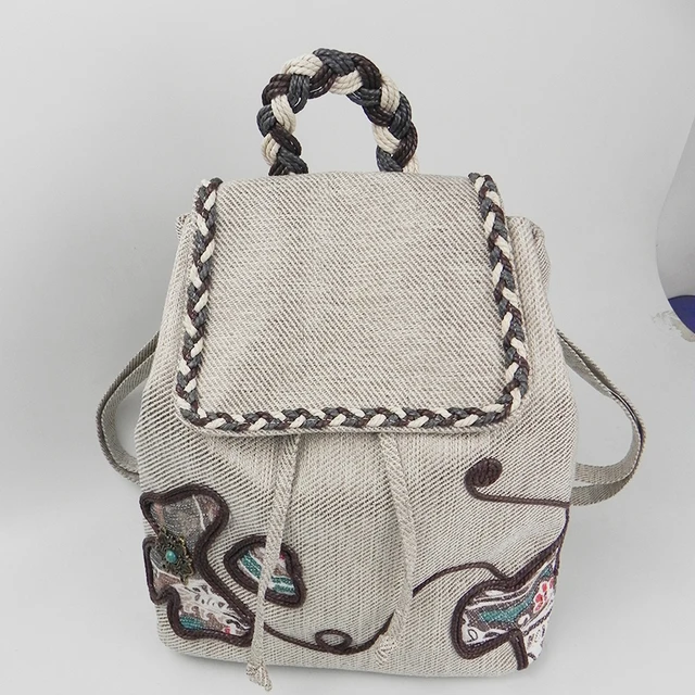 Best Offers Fashion Ethnic Women Handmade Backpack Canvas Featured Cotton Thread Chain Embroidery Bagpack Girl Christmas Gift Grace Hand Bag
