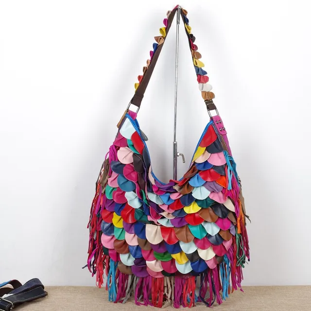 Special Offers 039 Genuine Sheepskin Leather Handbag Features Soft Multi-color Pattern Tassels Shoulder Oblique Slanting Women's Bags Totes