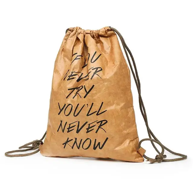 Best Price Vintage Women Kraft Drawstring bag fashion Ladies Portable Waterproof Letters Printed Casual Shoulder Bucket Handbags Features: