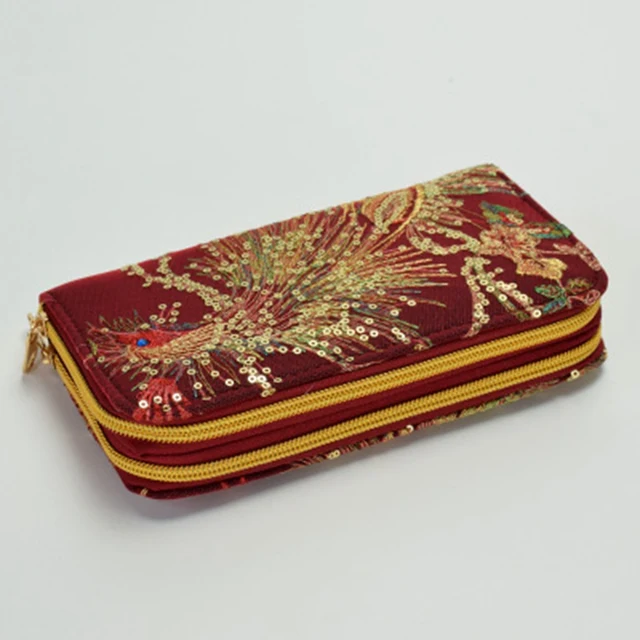 Cheap Chinese national wind double-sided embroidery wallet high-end features peacock embroidery hand-made change mobile phone bag