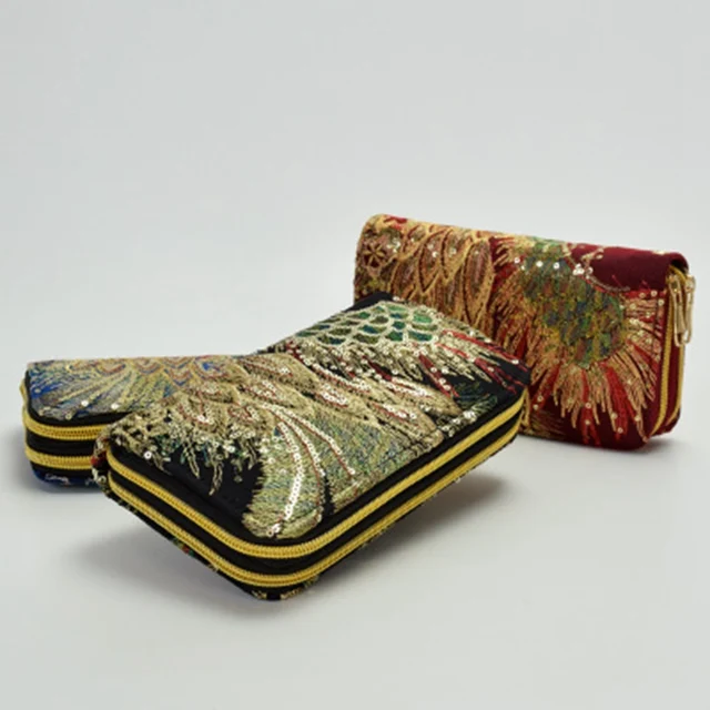 Best Offers 2019 fashion national wind double-sided embroidery wallet high-end features peacock embroidery hand-made change mobile phone bag